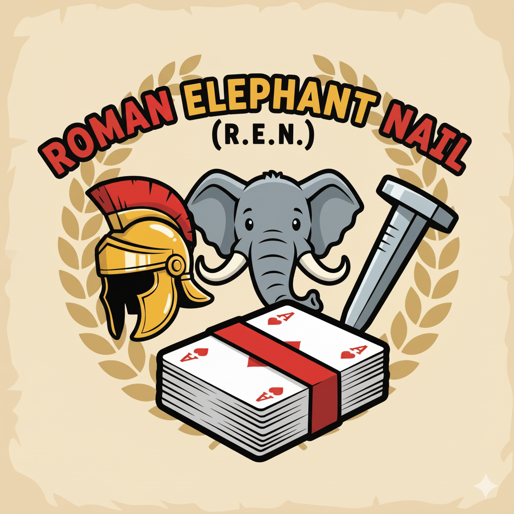 Roman Elephant Nail (R.E.N.) is a fun spin on the game Egyptian Rat Screw (E.R.S.). This game is a reversal of the standard way of play, with some twists. Still requiring the skills and reaction time to win, R.E.N. provides a unique experience to those who enjoy card games and are competitive.
